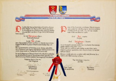 der Stadt Königsbrunn, Adam Metzner, als Zeichen deutscher Solidarität mit Rab, eine europäische Städtepartnerschaft zwischen beiden Kommunen zu begründen.